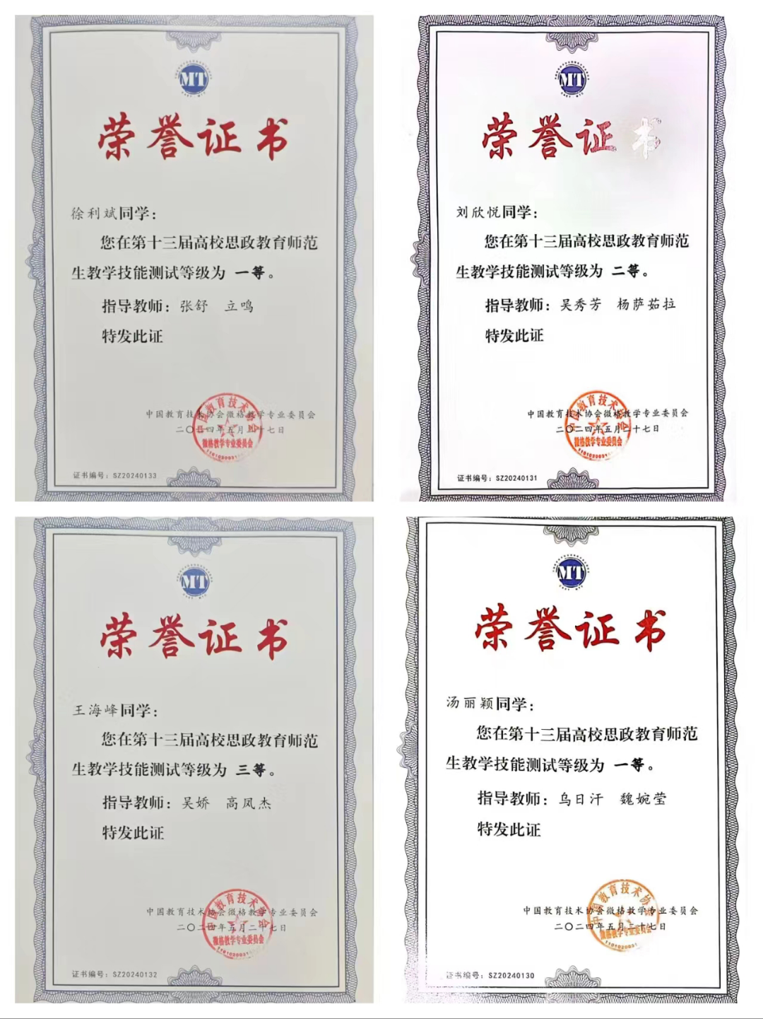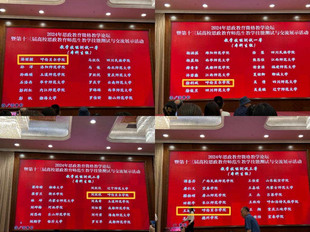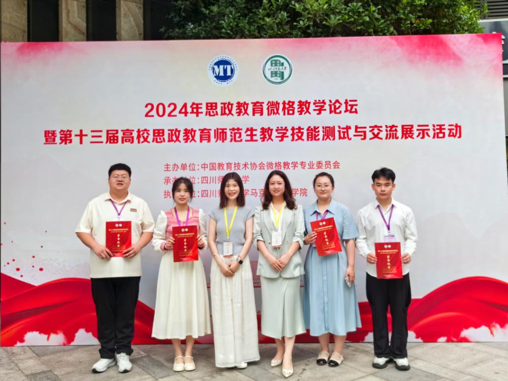 5月24日至27日,2024年思政教育微格教学论坛暨第十三届高校思政教育师范生教学技能测试与交流展示活动在四川成都顺利举行。此次展示活动由中国教育技术协会微格教学专业委员会主办,四川师范大学承办。西南大学、华中师范大学、陕西师范大学等全国近百所高校的547名选手参加了本届高校思政教育师范生教学技能测试与交流展示活动。万象城awc777万象城娱乐官网由杨萨茹拉老师、立鸣老师带队,刘欣悦、汤丽颖、徐利斌、王海峰四名学生参加。