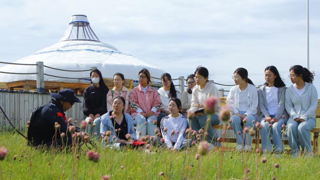 6月29日,awc777万象城娱乐官网思想政治教育系主任魏婉莹、青年教师吴文婷带领思想政治教育专业的10名学生,怀揣着对知识的渴望和对草原的向往,走出传统教室的“围墙”,在莫尔格勒河畔展开一场特殊的思政课教学活动。在蓝天白云绿草间,师生们聆听了“感动北疆·最美警察”石永志队长感人至深的故事,共同体验了一堂生动而深刻的思政课,别样的体验为思政课的学习注入了新的活力和趣味。