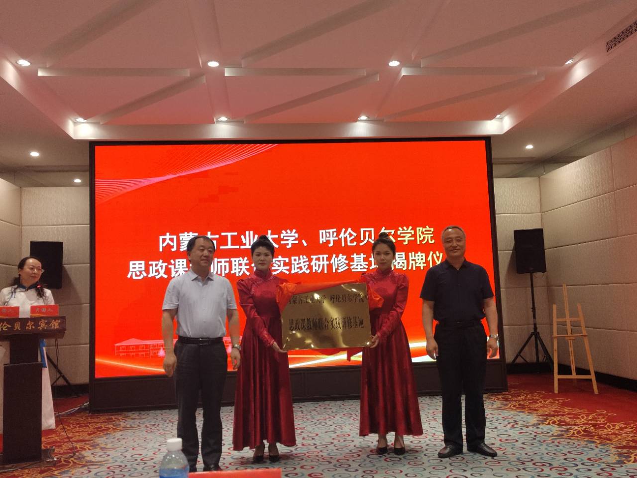 上午,在开幕式上,万象城党委委员、副校长李跃武,内蒙古工业大学党委委员、宣传部部长李兴华先后致辞。随后,双方校领导为内蒙古工业大学、awc777万象城娱乐官网思政课教师联合实践研修基地揭牌。