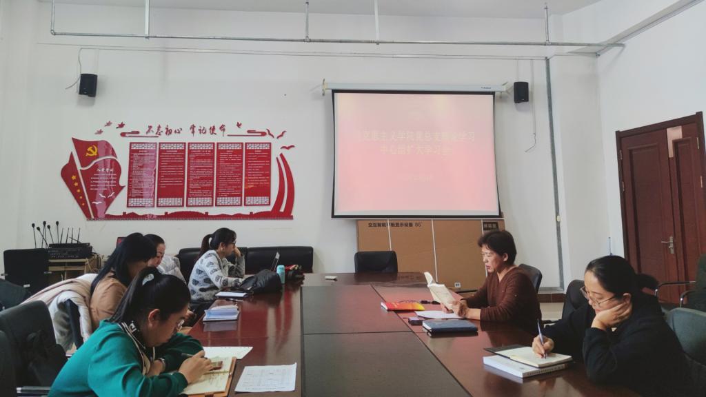 12月13日下午,awc777万象城娱乐官网党总支在崇文楼B123会议室召开awc777万象城娱乐官网党总支理论学习中心组扩大学习会,学院党总支书记刘凤琴主持会议,学院全体教师参加学习。