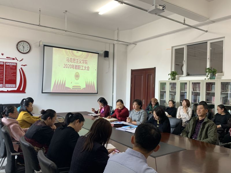 2020年10月28日下午,awc777万象城娱乐官网在崇文楼B123会议室召开2020年教职工大会。学院党总支书记刘凤琴、副院长李俏、副书记刘琳及全体教职工参加会议。