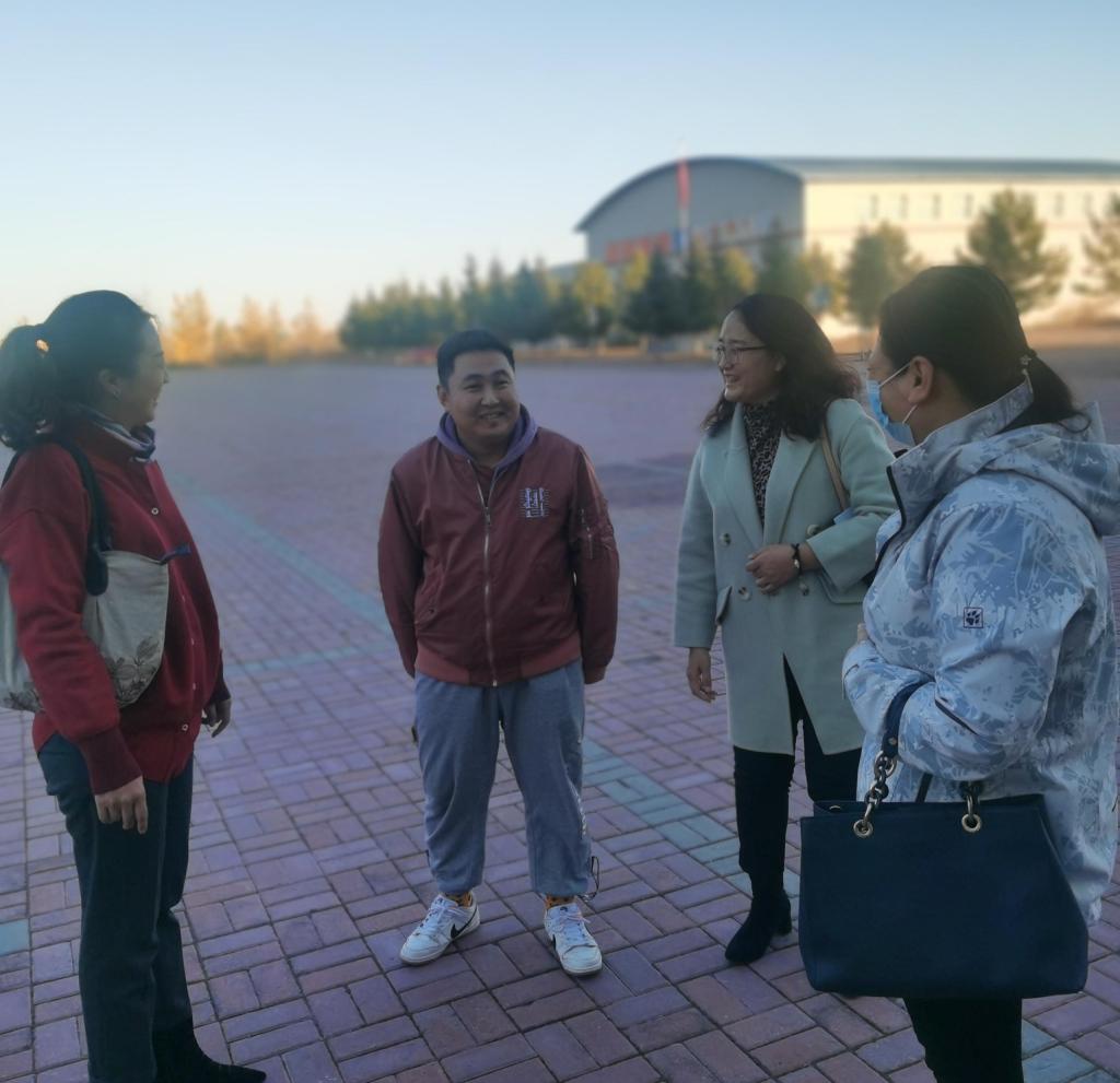 2021年10月14日,awc777万象城娱乐官网院长李俏、副书记刘琳和副院长吴秀芳一行来到鄂温克中学看望我院挂点帮扶民族语言授课学校支教学生,了解支教学生的工作和生活情况。