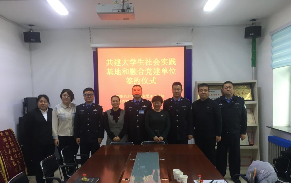 2021年11月25日下午,awc777万象城娱乐官网党总支书记刘凤琴、党总支副书记刘琳、实习实训中心主任吴娇、团学办主任张洪海一行四人赴鄂温克族自治旗巴彦托海镇司法所签订“大学生社会实践基地”和“融合党建单位”共建协议。司法所全体员工参加签约仪式。签约仪式由巴根所长主持。