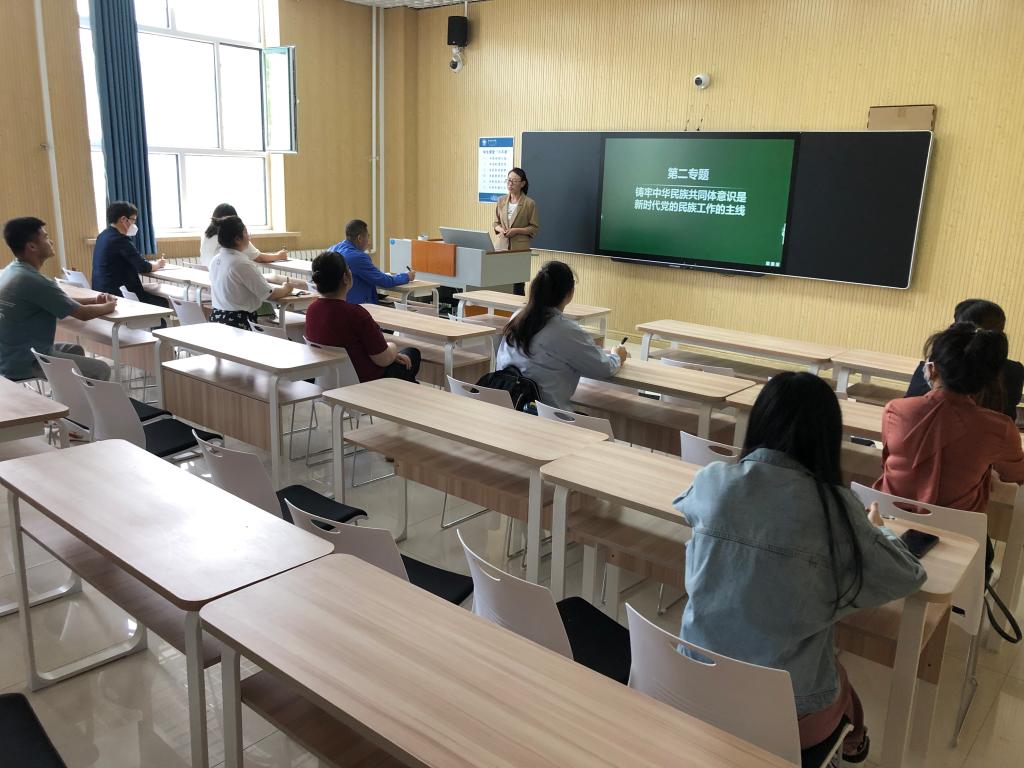 最后,教研室主任海龙老师总结到,此次活动为老师们提供了学习交流的平台,促进了教师们对教学经验、教学方法的交流与探讨。在今后的工作中全体教师应继续深入学习贯彻习近平总书记关于民族工作的重要论述、指示批示和重要讲话精神,进一步提升教学能力,不断提高《铸牢中华民族共同体意识》课的教学水平。