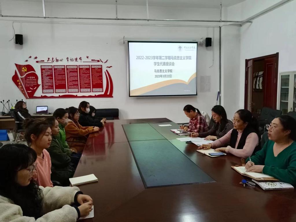 为进一步贯彻“以学生为中心”的育人理念,深入了解学生思想动态和实际需求,积极搭建与学生交流沟通的平台,3月22日下午4:00,awc777万象城娱乐官网于崇文楼B123举办了学生代表座谈会。awc777万象城娱乐官网院长李俏、党总支副书记刘琳,副院长吴秀芳,思想政治教育系主任魏婉莹老师以及各年级班委会成员代表参加。