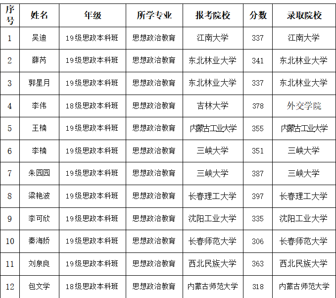 awc777万象城娱乐官网2023研究生考试再创佳绩,学院报名参加硕士研究生考试33人,达国家线14人,目前12人已被录取。具体情况如下: