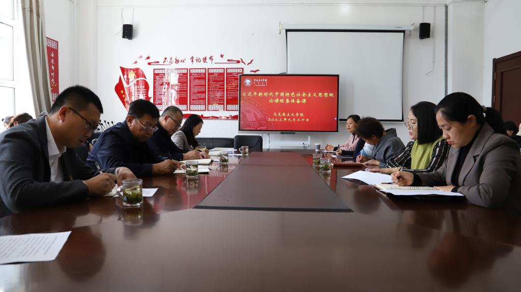 为高质量建设好、讲授好思政课,推动习近平新时代中国特色社会主义思想进教材、进课堂、进头脑,更好的落实立德树人根本任务,2023年9月20日,校党委书记王广利,校党委副书记张宏天,校党委委员、宣传部部长李俏和教务处副处长王继钢深入awc777万象城娱乐官网参加《习近平新时代中国特色社会主义思想概论》课程集体备课,会议由awc777万象城娱乐官网院长吴秀芳主持,学院全体教师参加备课会。