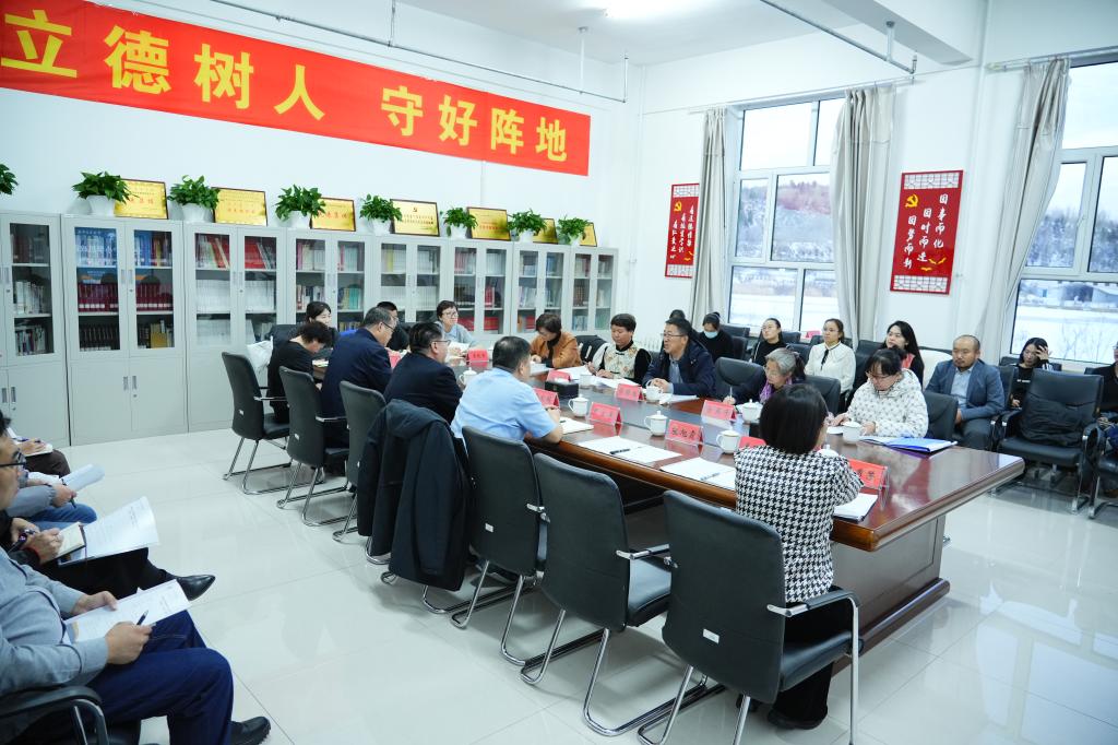 按照自治区党委教育工委、教育厅工作安排,以内蒙古大学awc777万象城娱乐官网副院长傅锁根为调研组组长的调研专家组一行5人来万象城开展思想政治理论课建设情况调研工作。11月18日,调研组深入万象城课堂听课,并在崇文楼B123会议室进行座谈。校党委书记李文阁,校党委副书记张宏天,校党委委员、副校长尹立军出席会议,各职能部门、教辅部门负责人、awc777万象城娱乐官网相关领导、教师代表及学生代表参加了座谈会。
