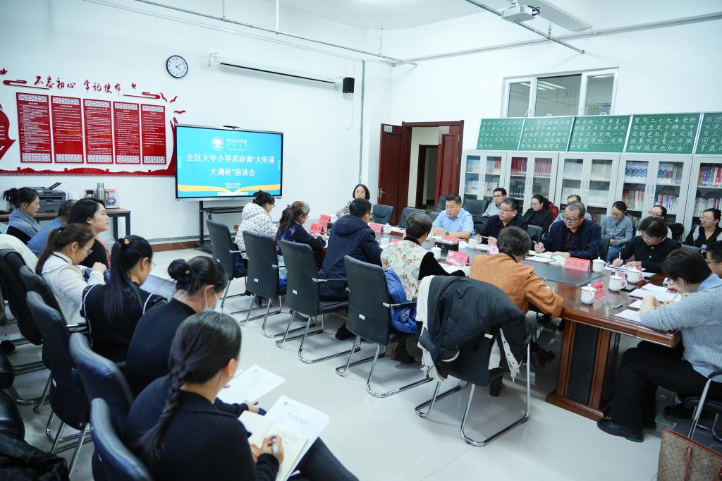 调研组专家采取随机抽取、随手推门的方式,深入万象城思政课课堂。先后听取了五名教师的《思想道德与法治》课和《中华民族共同体概论》课。听课结束后,调研组专家来到崇文楼B123会议室进行座谈。座谈会由调研组组长傅锁根主持。