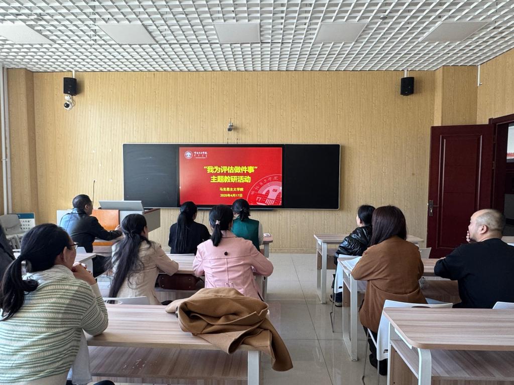 4月17日下午“毛泽东思想和中国特色社会主义理论体系概论”教研室在崇文楼B125进行“我为评估做件事”主题教研活动,课程组教师于洋进行了课程展示,参会教师结合自身教学经验和学生实际情况,提出了诸多建设性意见,进一步细化了教学方案,明确了教学思路与方法,为提升课堂教学质量提供了有力保障。