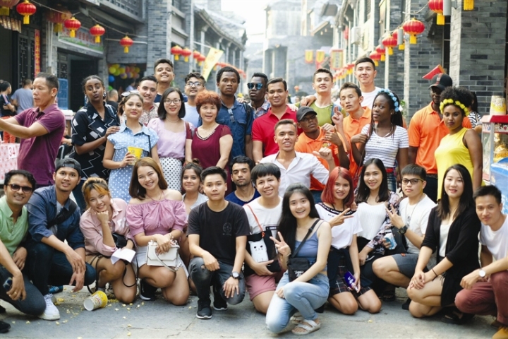 中秋节期间,外国留学生们来到宜州怀远古镇感受节日气氛
