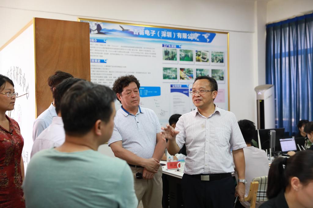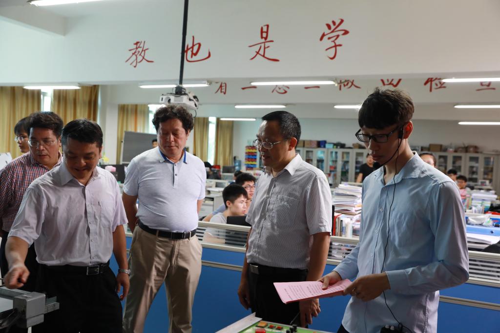 图为调研物理与机电工程学院校企合作情况