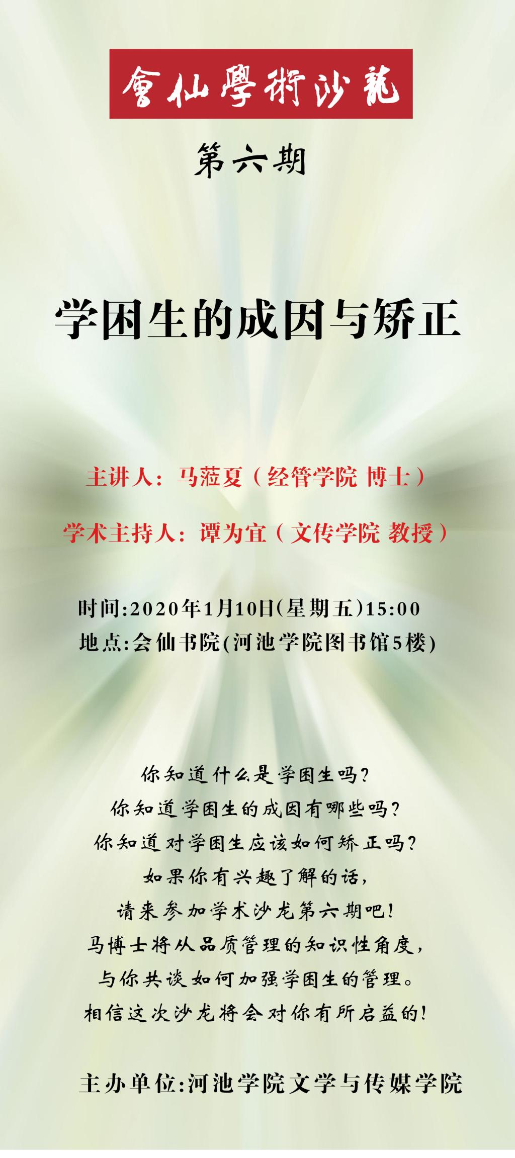 你知道什么是学困生吗?你知道学困生的成因有哪些吗?你知道对学困生应该如何矫正吗?如果你有兴趣了解的话,请来参加学术沙龙第六期吧!马博士将从品质管理的知识性角度,与你共谈如何加强学困生的管理。相信这次沙龙将会对你有所启益的!