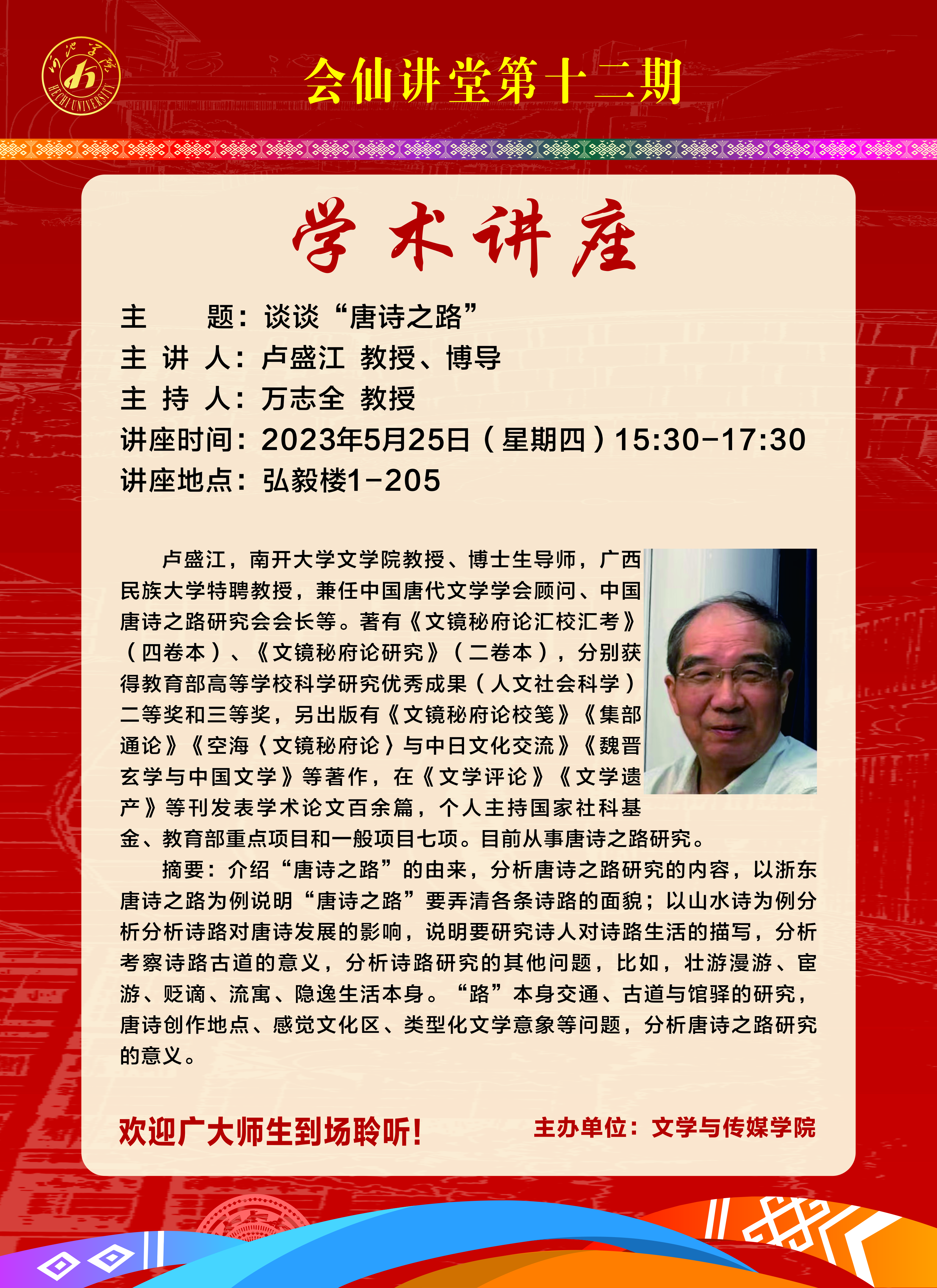 【会仙讲堂】卢盛江:谈谈“唐诗之路”(会仙讲堂第十二期)
