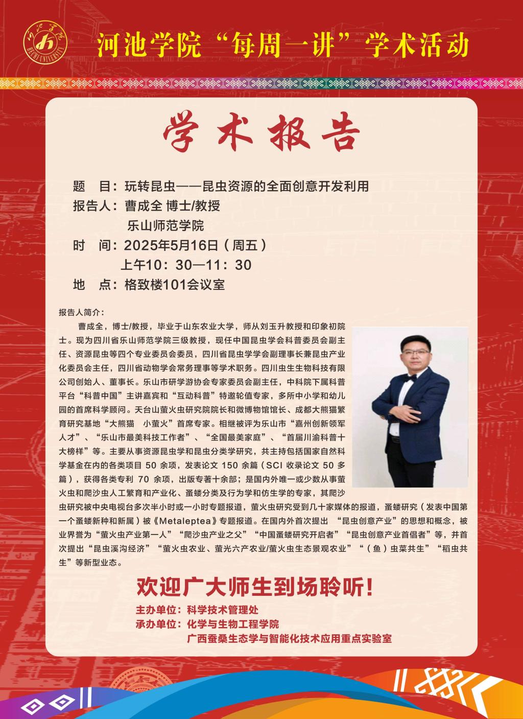 【学术报告】玩转昆虫——昆虫资源的全面创意开发利用