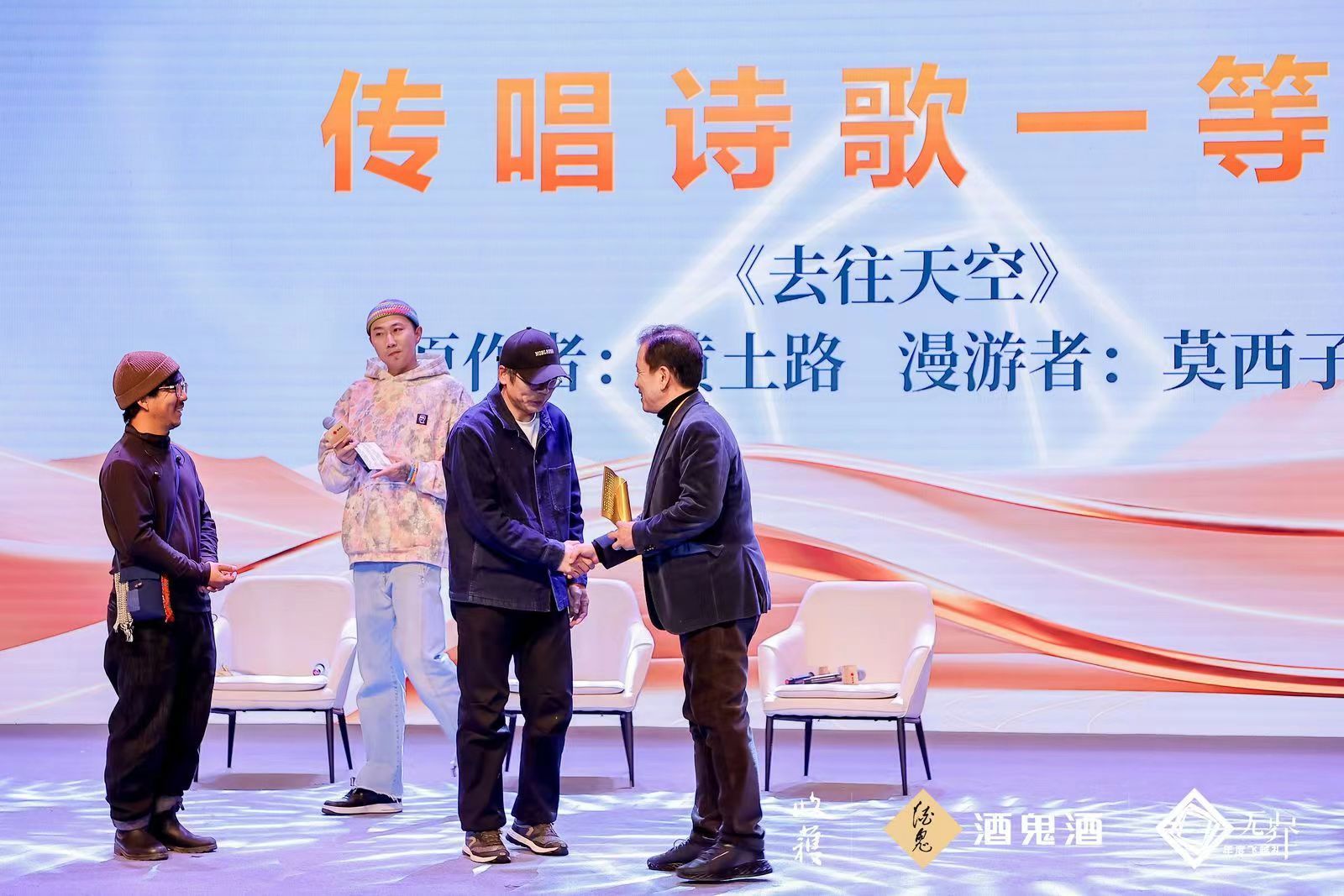 颁奖礼活动共有四个章节,分别为“我界”“跨界”“无界”“终章”,突破了传统认知。在“无界”环节,黄土路和莫西子诗从著名作家、中国作家协会副主席李敬泽先生的手里接过了奖杯。在互动环节,李敬泽由衷评价少数民族诗人:诗人就是人类中的少数。而一个来自少数民族的诗人,说着另一种语言,来自草原和山林的语言,他们是少数中的少数,他们是黄金般的少数。莫西子诗则现场弹奏演唱了《去往天空》:想和一朵云,站在一起……略带空旷苍凉的声音,经由 30 多家媒体的现场直播,传向四处,像一种诗意的漫游。(作者:陈代云 校对:吴海娇 审核:韦海燕)