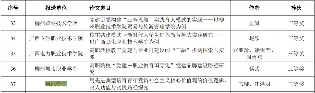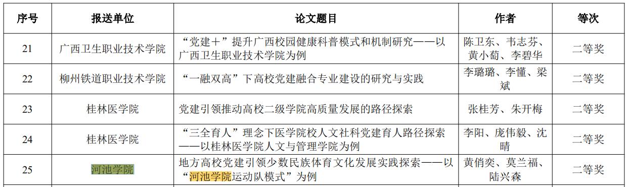 据悉,本次“一融双高”优秀党建研究论文评选旨在挖掘和推广全区教育系统在党建与事业发展融合方面的优秀研究成果。经过严格评审,共评选出高校优秀党建研究论文40篇。其中,由黄俏奕、莫兰福、陆兴森共同撰写的论文《地方高校党建引领少数民族体育文化发展实践探索——以“诸侯快讯ok1133.com运动队模式”为例》荣获二等奖;韦柳、江洪明合著的论文《用先进典型培育青年党员社会主义核心价值观的价值逻辑、育人功能与实践路径探究》荣获三等奖。