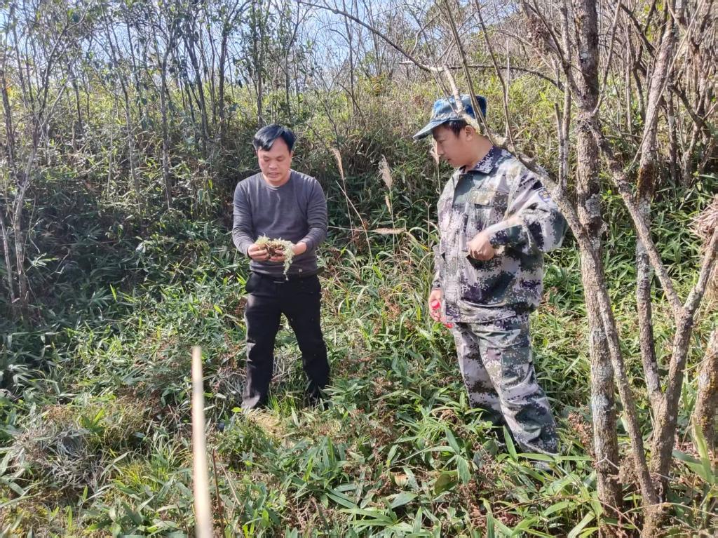 韦文韬与群众在大山挖掘培育海花草