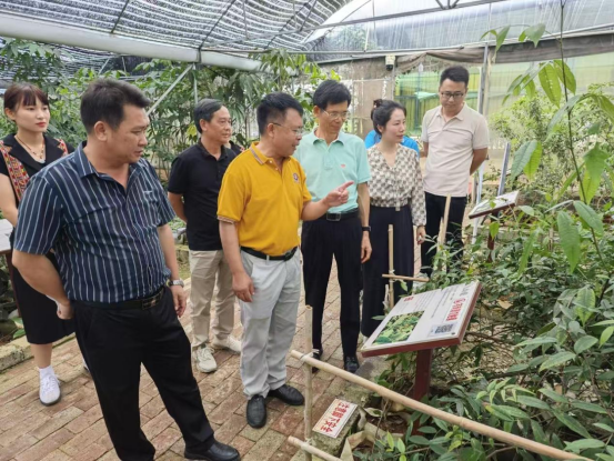 覃国乐教授(左二)在道地药材基地讲解民族药材种植技术