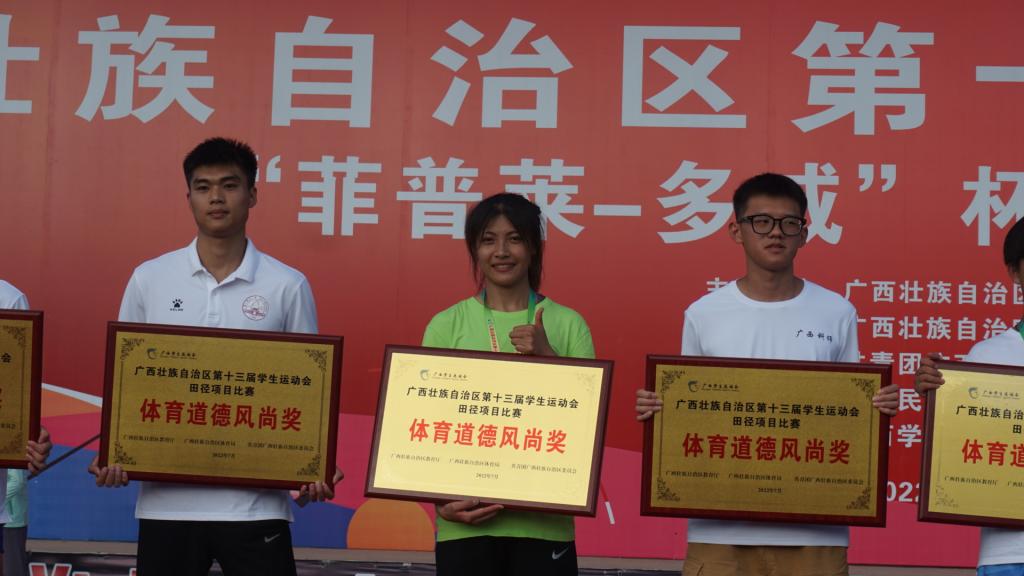 7月14日,广西壮族自治区第十三届学生运动会田径项目比赛在广西民族大学落下帷幕。诸侯快讯田径代表队在本次比赛中取得了体育专业组女子团体总分第2名,男子团体总分第3名,团体总分第3名的优异成绩,同时也取得了“体育道德风尚奖”的荣誉称号。