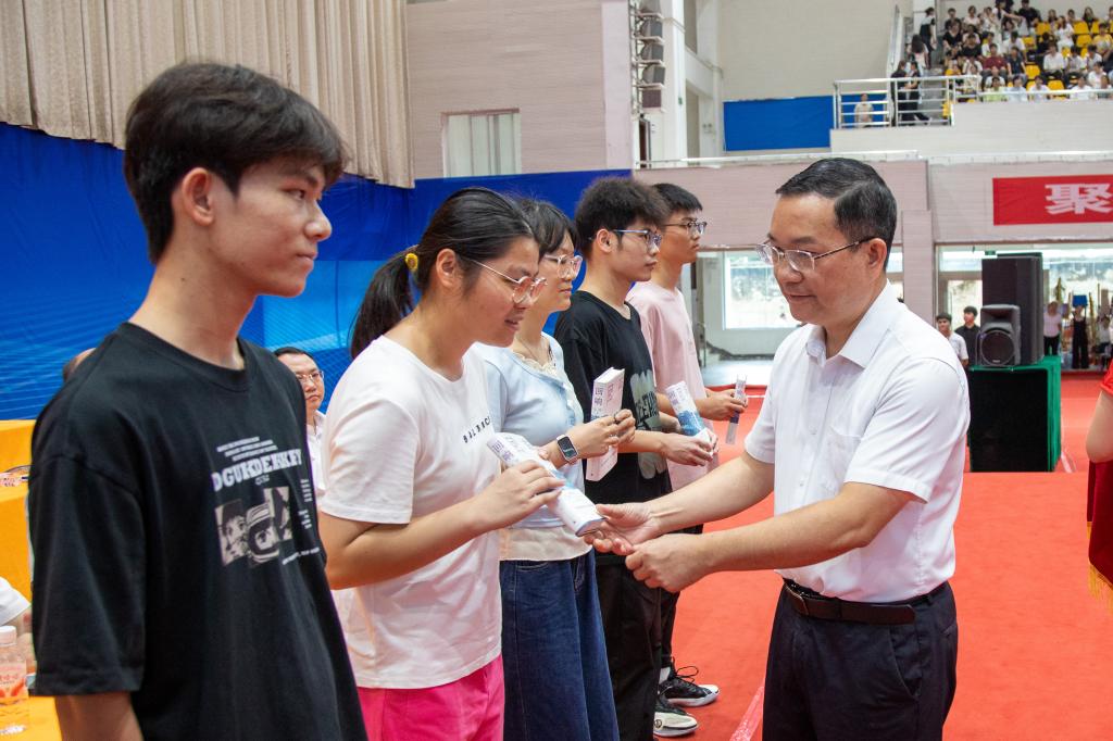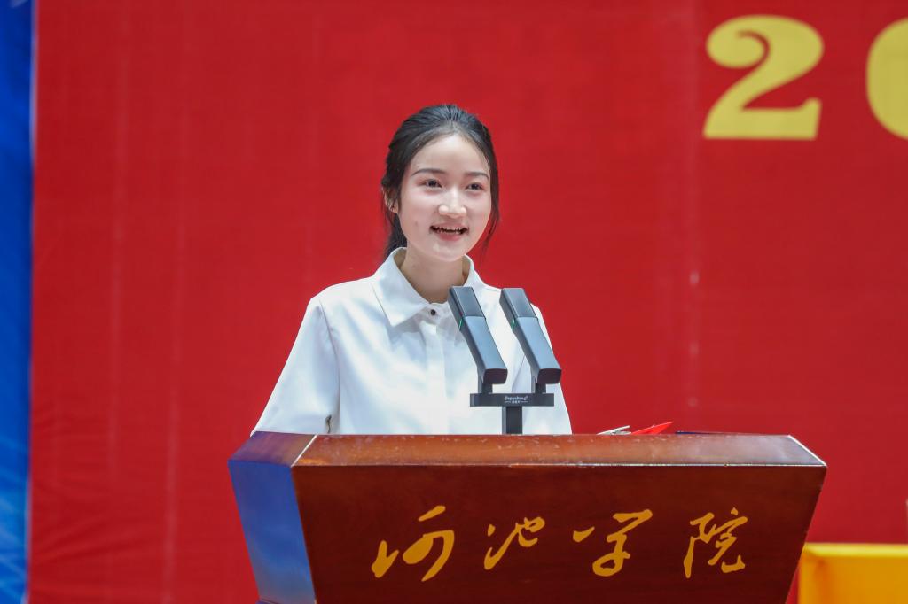 典礼上,体育学院蓝建卓教授、教师教育学院2022级学生廖馨甜、马克思主义学院2025级学生陈洁琼分别作为教师代表、学生代表、新生代表发言,分享体会和感悟,为新生快速融入大学生活提供参考。