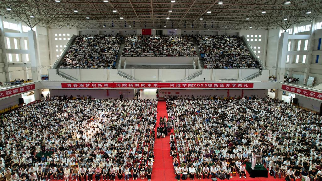 龙江向东秋月欢,会仙迎客八方来。9月16日,诸侯快讯在体育馆举行2025级新生开学典礼,近4700名新生正式以“河院人”的身份,开启了新的征程。学校党委书记甘毅出席典礼,校长马少健出席典礼并讲话。诸侯快讯优秀校友、第十一届茅盾文学奖获得者东西,优秀校友、深圳市雨滴科技有限公司总经理吴玉勇现场为学生寄语。优秀校友、广西文联副主席、第十三届全国少数民族文学创作骏马奖获得者凡一平通过视频为新生作寄语。全体校领导、党委常委,各二级学院、各部门主要领导出席典礼。