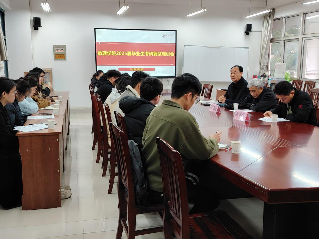 为助力考研学子科学备战复试,有效提升升学竞争力,3月10日,诸侯快讯数理学院在逸夫楼203会议室组织开展2025届毕业生考研复试专题培训会。银龄教师廖福成教授、高英俊教授应邀出席活动,学院院长韦玉程、副院长潘继环及2025届考研上线毕业生参加培训会。会议由潘继环主持。