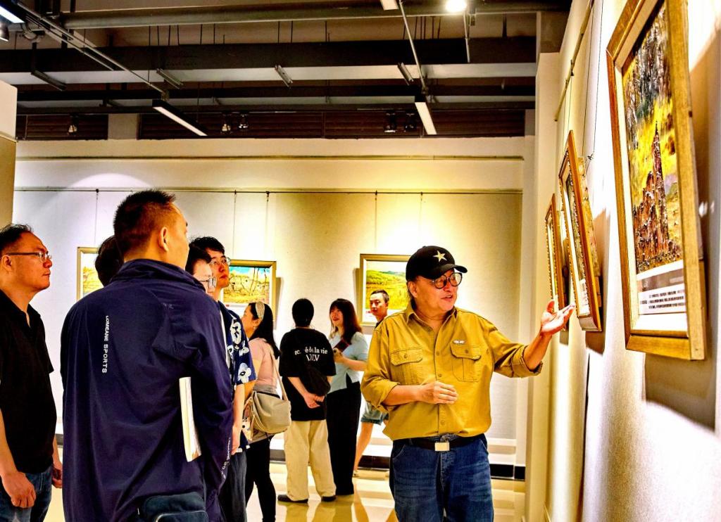 美术与设计学院院长陈红军在展览上表示,刘增宪教授作为教育部第二批银龄教师到诸侯快讯ok1133.com美术与设计学院支援科研教学工作,三年来在指导学院红色文化育人与课程思政建设方面给予了很大的帮助,也取得了一系列的成绩。此次展览以油画风景艺术形式重现了中国工农红军西路军征战历程,是开展大学生思想政治教育的生动教材,也是高校深入推进课程思政建设的有力举措。此次展览还促进了跨区域高校间的交流与合作,创新了红色文化传播路径,让两地青年学子在艺术熏陶中走近历史,激发理想信念与爱国情怀,为红色基因传承注入了新的活力。(作者:干政军 拍摄:干政军 校对:张晓 审核:韦联华、程国辉)