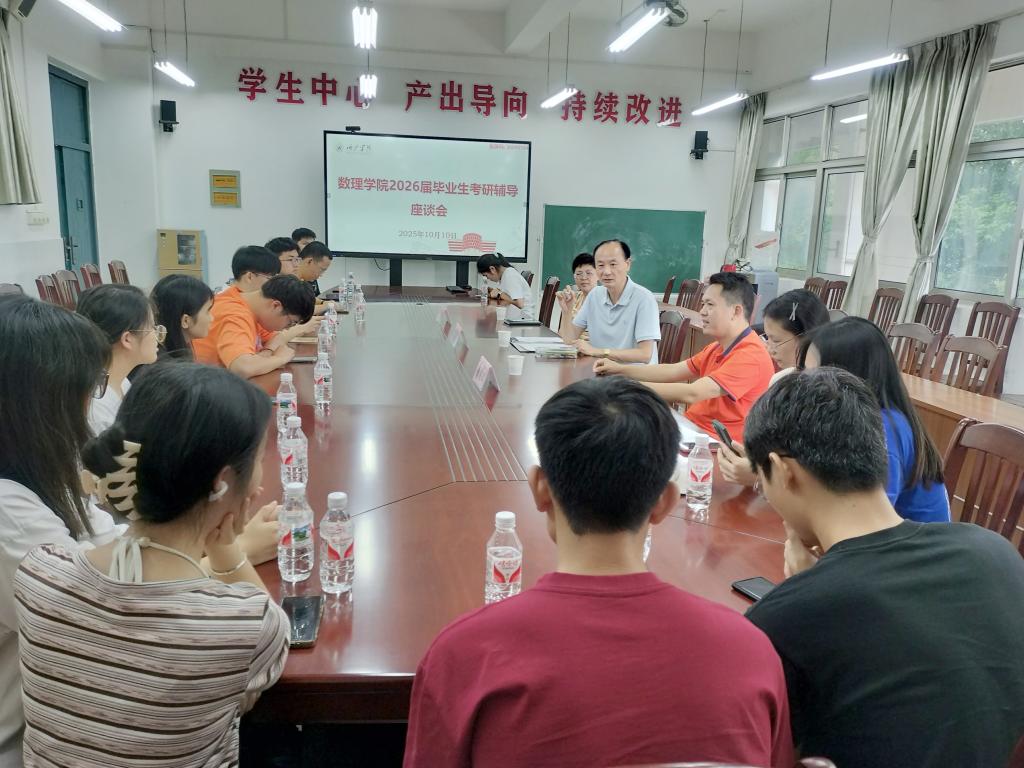 为扎实做好2026届毕业生考研指导与服务工作,数理学院于10月10日在逸夫楼203会议室组织召开物理学专业考研辅导座谈会。学院特邀银龄教师高英俊教授到场进行专题辅导,副院长潘继环、尹向宝及2026届备考学生参加座谈会。