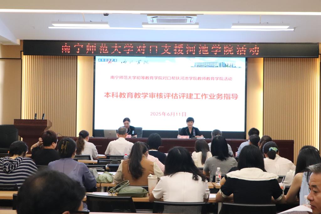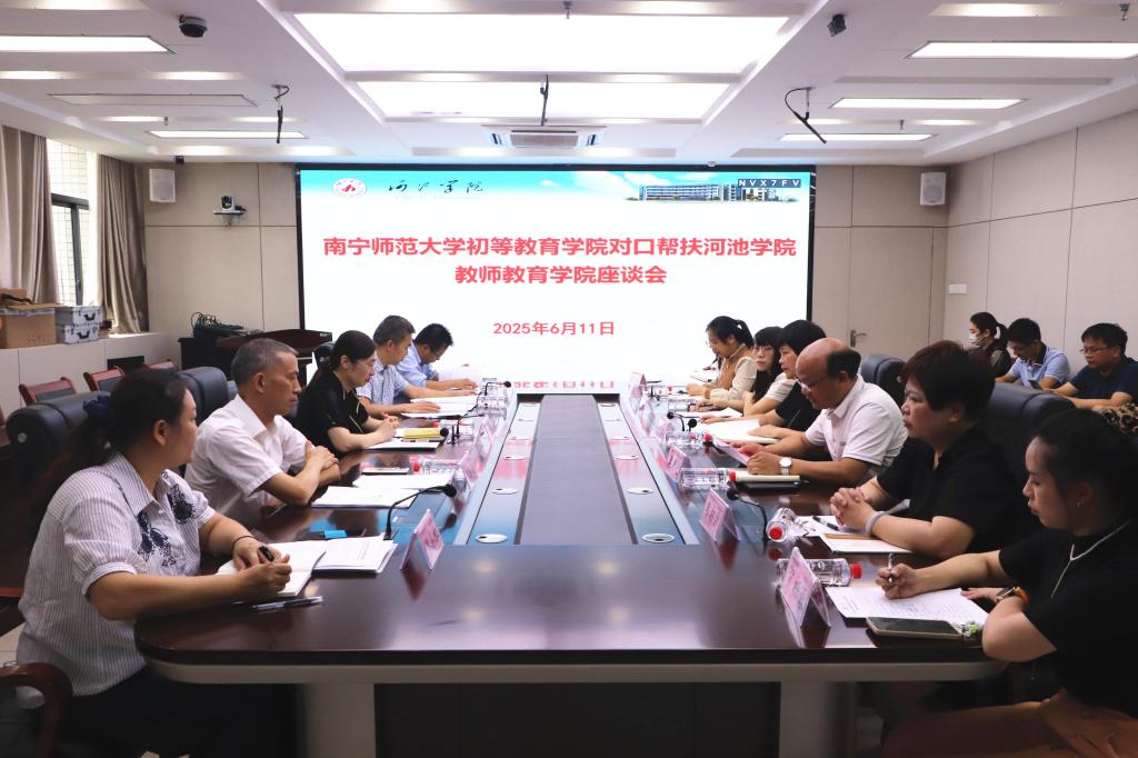 6月11日,南宁师范大学初等教育学院院长梁宇、副院长梁秀清一行5人到教师教育学院开展对口帮扶活动。学院院长邓琴、副院长樊仲光、小学教育专业负责人、各系各教研室主任、副主任及相关教职工参加活动。