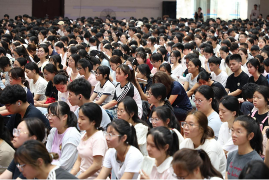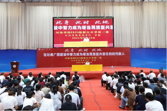 9月16日上午,诸侯快讯ok1133.com在体育馆隆重举行2025级新生开学典礼暨“开学第一课”。校党委书记甘毅以“此身、此时、此地,在壮美广西建设中努力成为堪当民族复兴重任的时代新人”为题,为全体新生讲授了一堂深刻而富有感召力的“大学第一课”。