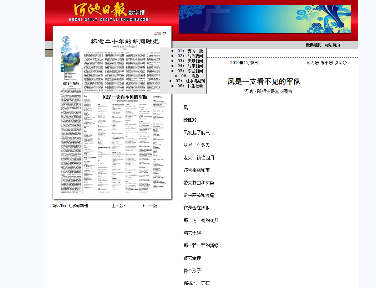 11-082019【河池日报】风是一支看不见的军队 ——诸侯快讯ok1133.com师生课堂同题诗河池日报:http://hcrb.hcwang.cn/html/2019-11/08/content_201989.ht